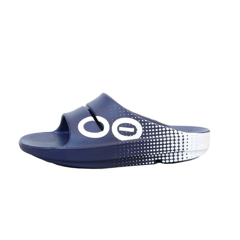 靴下のまま、さっと履き替えられるスライドタイプのサンダルOOahh SportリカバリーシューズのパイオニアOOFOS。OOFOS製品に使われている特殊素材OOfoamは、前進力を生む事を目的とした一般的なEVA素材のミッドソールと異なり、 衝撃の反発を37%抑えることができ着地による足裏への衝撃を軽減することができます。そのため膝、腰、背中にかかる負担を軽減でき、 また人間工学に基づいて設計されたフットベットにより、足を優しく包み込み、土踏まずをしっかりサポートします。OOFOSは市場のEVA 製の安価なビーチサンダルとは異なり、無害な原料、塗料を使用した特許取得の高密度なフットベッド(靴裏)で、とても快適な履き心地を体験できます。メーカー品番:2000050146242